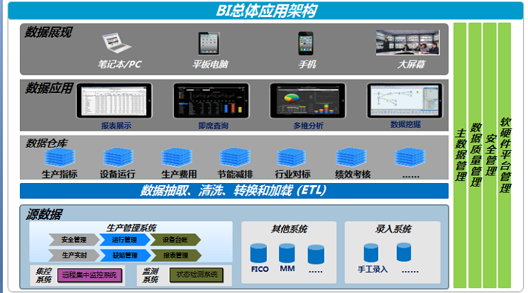 基于數據倉庫理念和思想,對公司不同應用系統(tǒng)的數據進行整合,實現新能源公司總部及各分、子公司的核心業(yè)務數據集中、集成與優(yōu)化整合,統(tǒng)一指標口徑,建立新能源電力公司的數據中心,從而消除信息孤島,實現所有業(yè)務數據的統(tǒng)一管理。