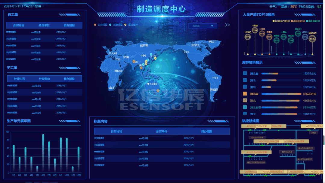 輔助圖表通常圍繞視覺中心的四周,起到錦上添花的作用,用來呈現次要指標,從各種維度進一步細化核心指標。時間類組件 時鐘